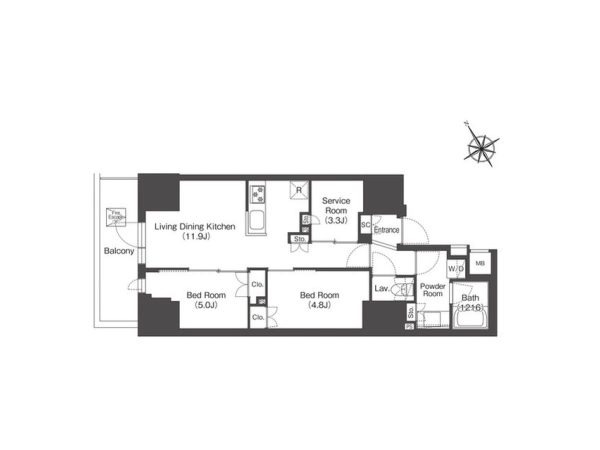 | 間取り詳細 | 2SLDK (LDK:11.9帖・洋:5帖・洋:4.8帖・S:3.3帖) |