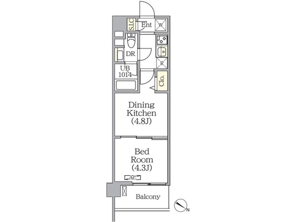 | 間取 | 1DK (DK:4.8帖・洋:4.3帖) |