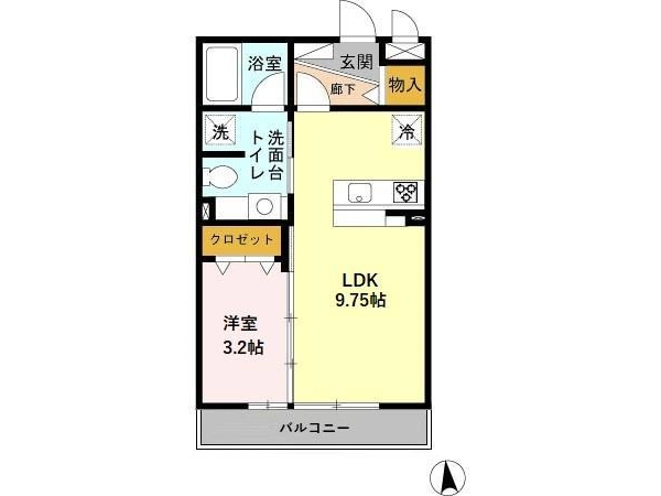 | 間取 | 1LDK (LDK:9.7帖・洋:3.2帖) |