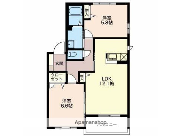 | 間取り詳細 | 2LDK (洋:6帖・洋:6.5帖・LDK:12帖) |