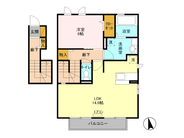 | 間取 | 1LDK (LDK:14.8帖・洋:6帖) |