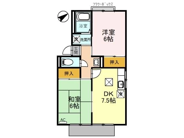 | 間取 | 2DK (DK:7.5帖・洋:6帖・和:6畳) |