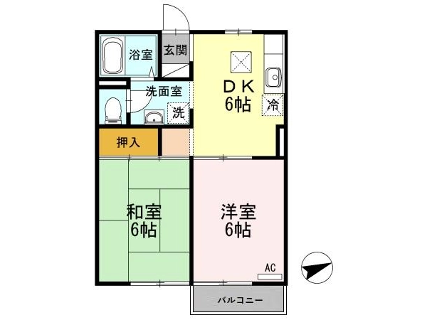 | 間取 | 2DK (DK:6帖・洋:6帖・洋:6帖) |
