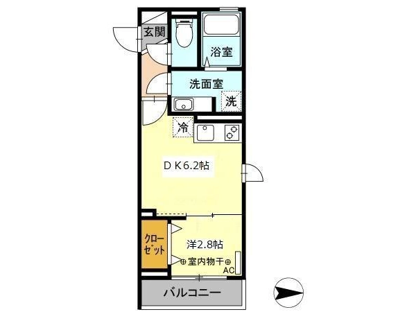 間取 | 1DK (DK:6.2帖・洋:2.8帖) |