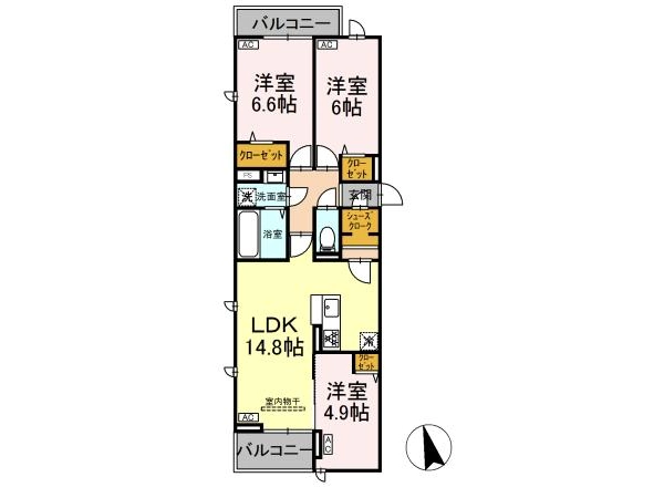 | 間取 | 3LDK (LDK:14.8帖・洋:6.6帖・洋:6帖・洋:4.9帖) |