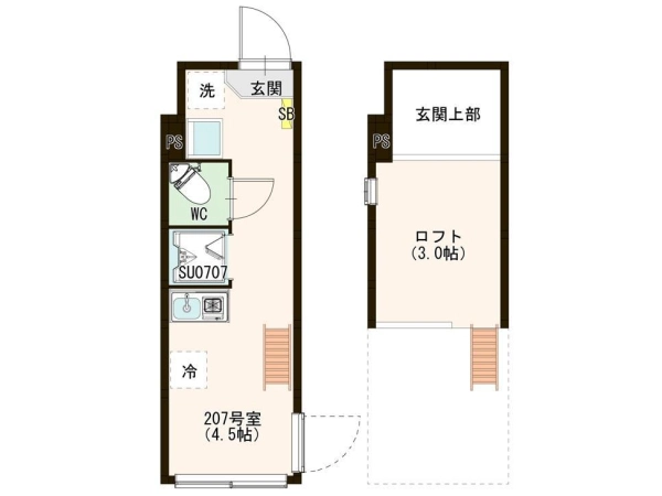 | 設備 | 宅配ボックス ・BSアンテナ ・インターネット対応 ・インターネット月額利用料無料 ・フローリング ・ロフト ・エアコン ・ガスキッチン ・室内洗濯機置き場 ・独立洗面台 ・シューズボックス |