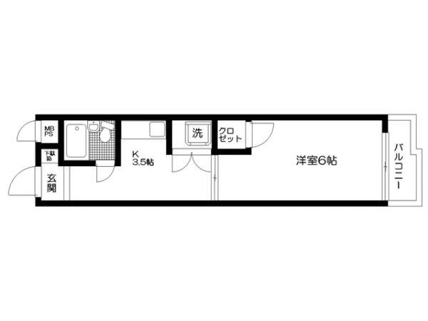 | 間取 | 1K (K:3.5帖・洋:6帖) |