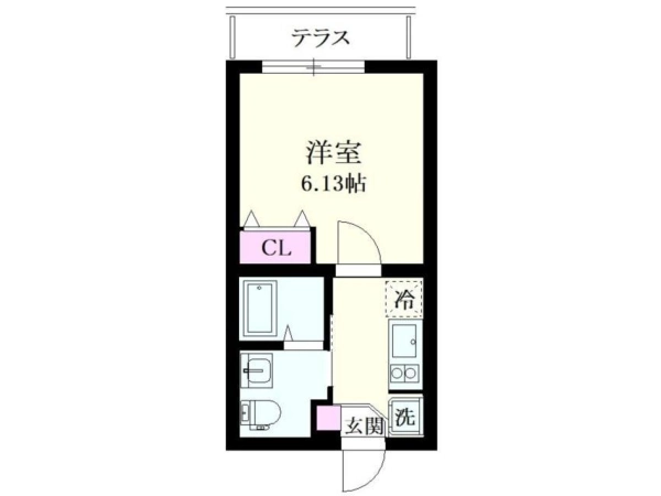 | 間取 | 1K (K:2帖・洋:6.1帖) |