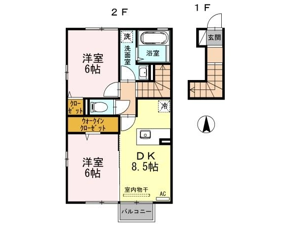 | 間取り詳細 | 2DK (DK:8.5帖・洋:6帖・洋:6帖) |