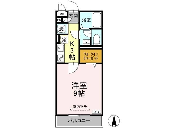 | 間取 | 1K (K:3帖・洋:9帖) |