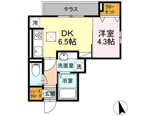 | 間取 | 1DK (DK:6.5帖・洋:4.3帖) |