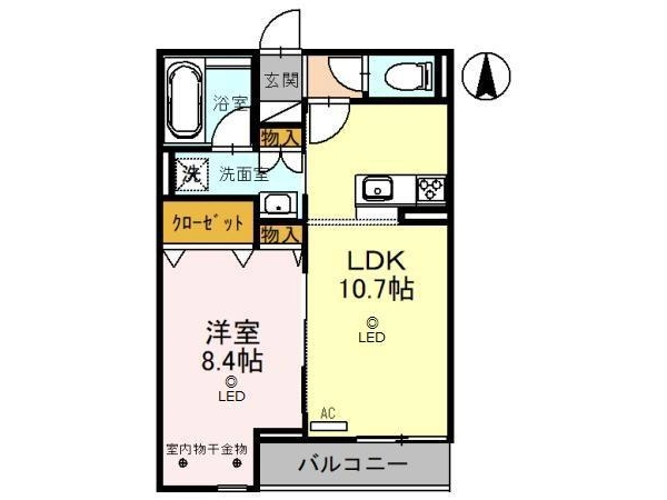 | 間取 | 1LDK (LDK:10.7帖・洋:8.4帖) |