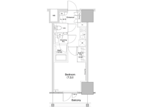 | 間取り詳細 | 1K (洋:7.2帖) |