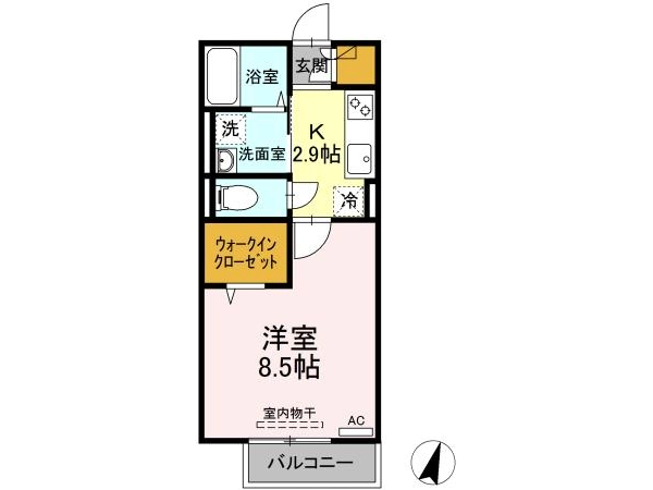 間取 | 1K (K:2.9帖・洋:8.5帖) |