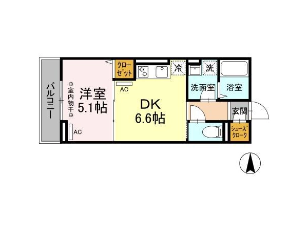 間取 | 1DK (DK:6.6帖・洋:5.1帖) |