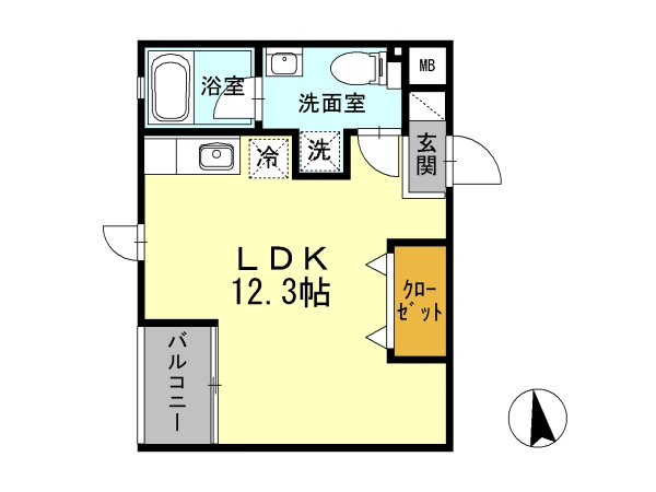 | 間取り詳細 | 1R (洋:12.3帖) |
