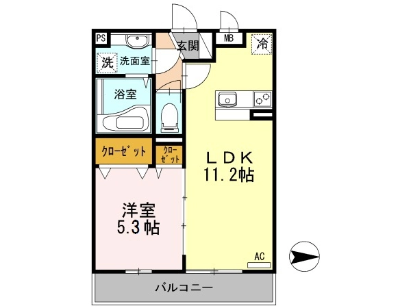 間取 | 1LDK (LDK:11.2帖・洋:5.3帖) |