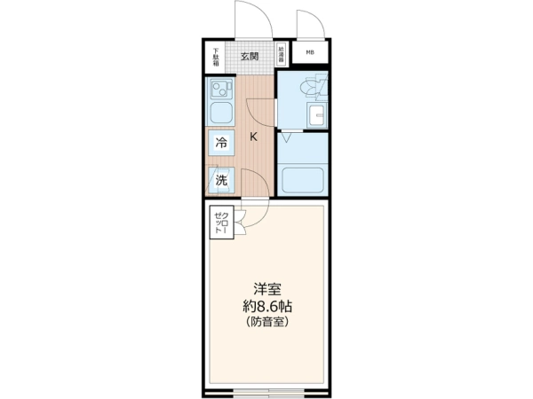 | 間取 | 1K (洋:8.6帖・K:帖) |