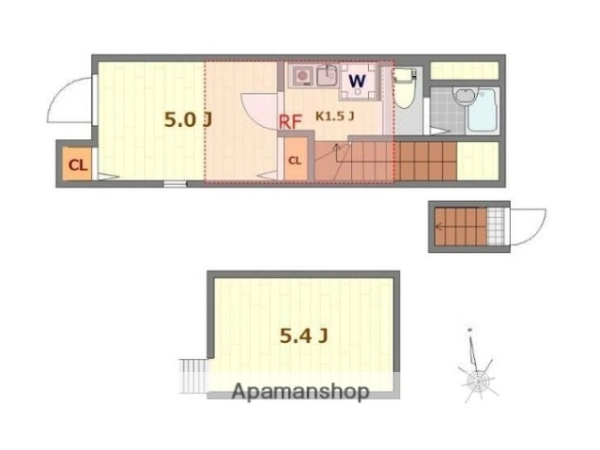| 間取 | 1K (洋:5帖・K:1.5帖) |