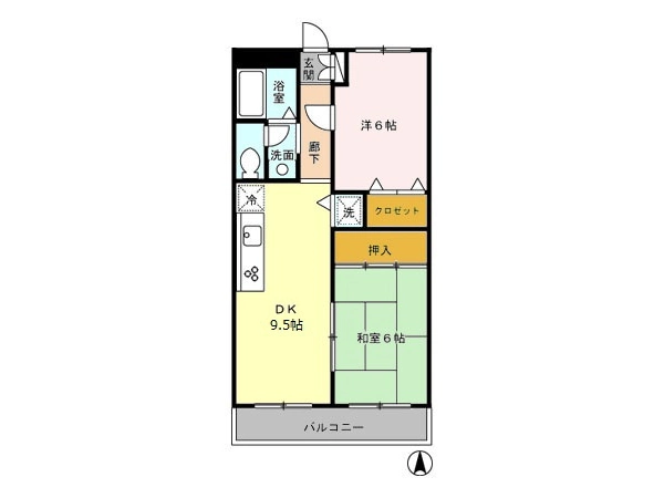 | 間取 | 2DK (DK:9.5帖・洋:6帖・和:6畳) |