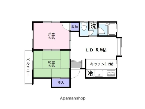 | 間取 | 2DK (和:6畳・洋:6帖・DK:9.7帖) |