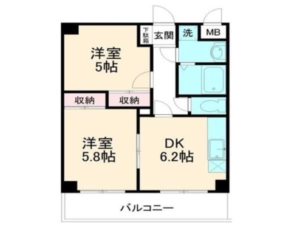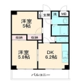 | 間取り詳細 | 2DK (洋:5帖・洋:5.8帖・DK:6.2帖) |