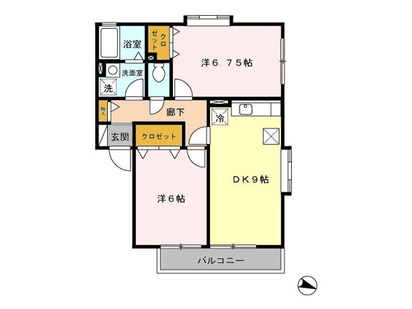 | 間取 | 2DK (DK:9帖・洋:6帖・洋:6.7帖) |