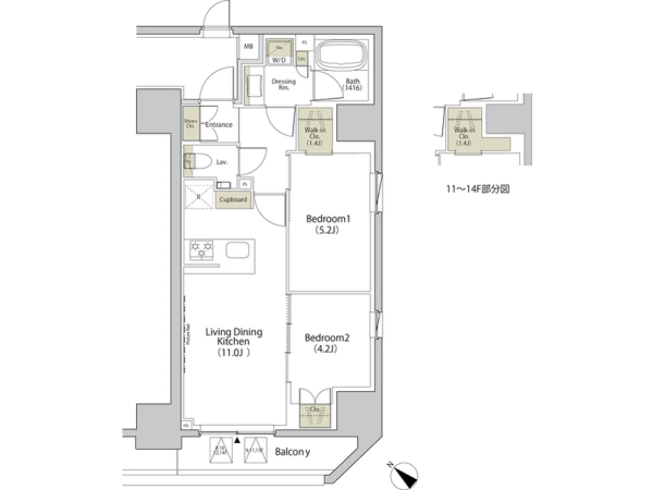 | 間取 | 2LDK (LDK:11帖・洋:5.2帖・洋:4.2帖) |