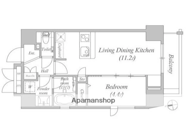 | 間取 | 1LDK (LDK:11.2帖・洋:4.4帖) |