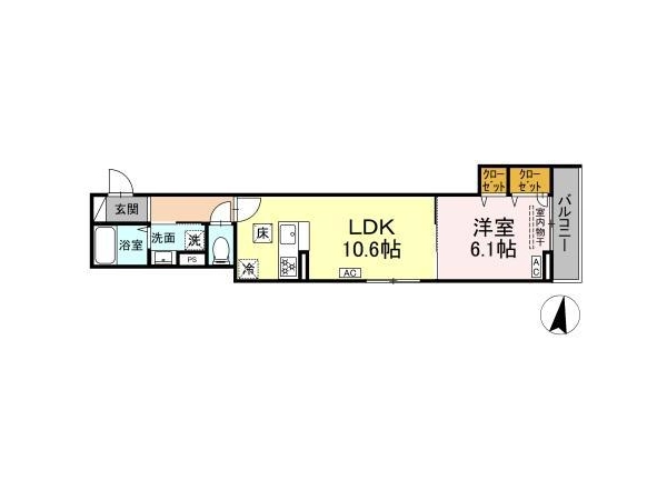 | 間取 | 1LDK (LDK:10.6帖・洋:6.1帖) |