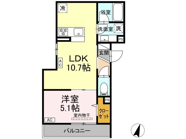 | 間取り詳細 | 1LDK (LDK:10.7帖・洋:5.1帖) |