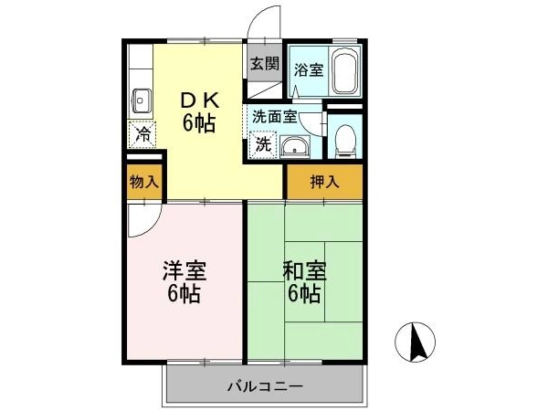 | 間取 | 2DK (DK:6帖・洋:6帖・和:6畳) |