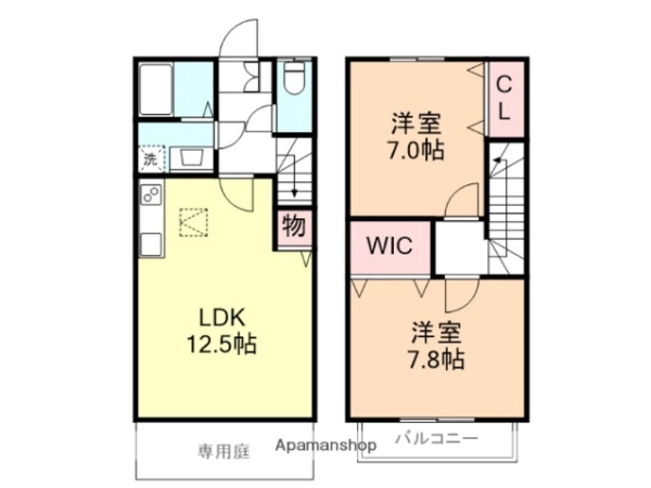 | 間取り詳細 | 2LDK (LDK:12.5帖・洋:7帖・洋:7.8帖) |