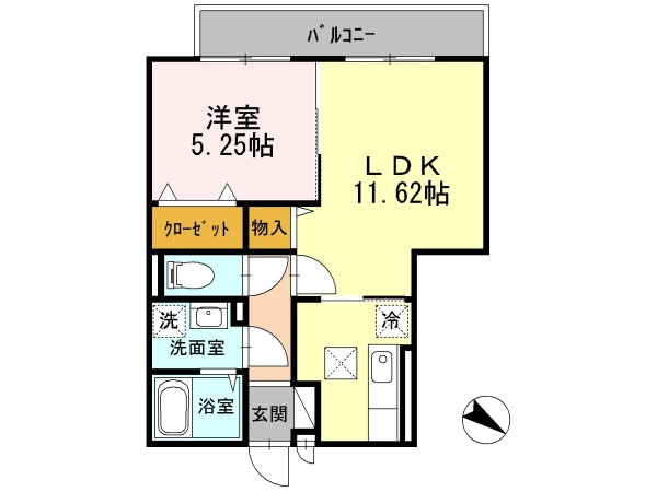 | 間取 | 1LDK (LDK:11.6帖・洋:5.2帖) |