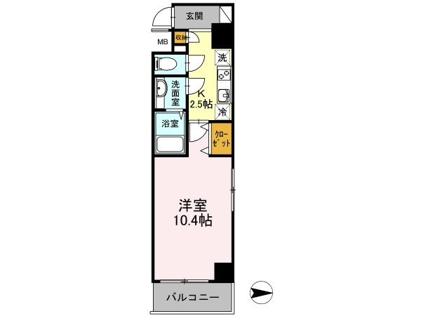 | 間取 | 1K (K:2.5帖・洋:10.4帖) |