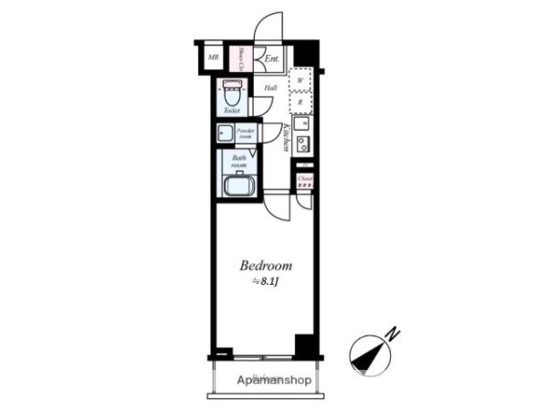| 間取り詳細 | 1K (洋:8.1帖) |
