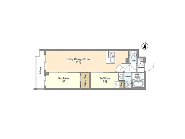 | 間取 | 2LDK (LDK:13.3帖・洋:4帖・洋:3.3帖) |