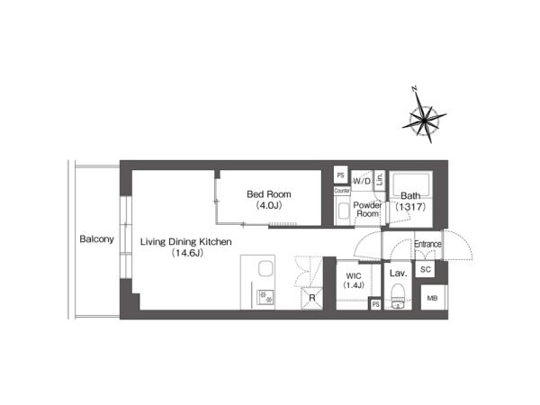 | 間取 | 1LDK (LDK:14.6帖・洋:4帖) |