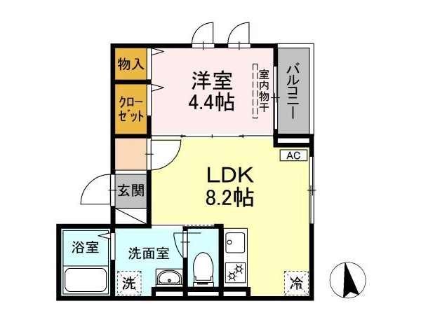 | 間取 | 1LDK (LDK:8.2帖・洋:4.4帖) |