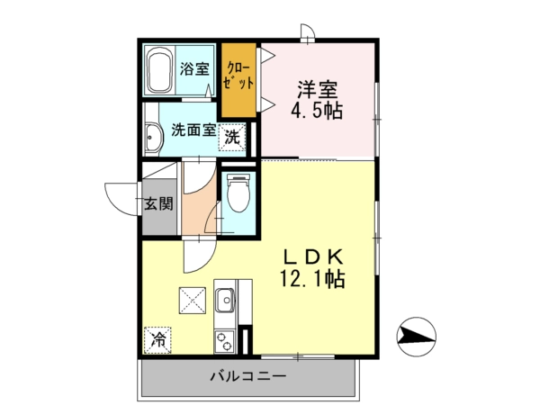 | 間取 | 1LDK (LDK:12.1帖・洋:4.5帖) |