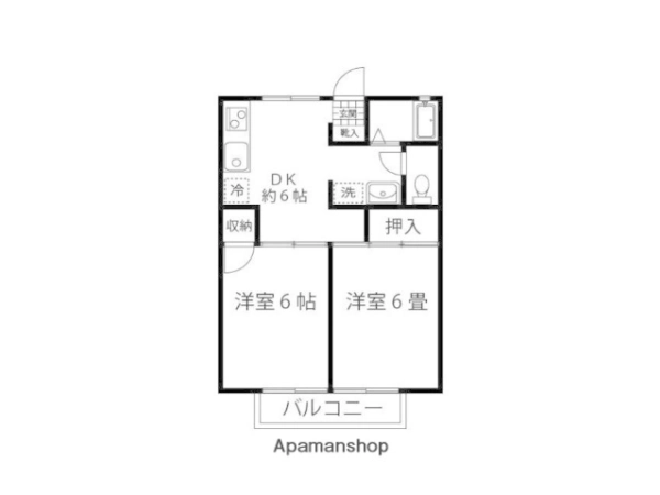 | 間取 | 2DK (和:6畳・洋:6帖・DK:6帖) |