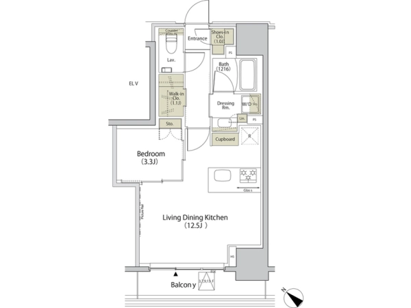 | 間取 | 1LDK (LDK:12.5帖・洋:3.3帖) |