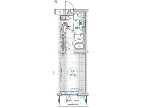 | 間取り詳細 | 1K (洋:8.7帖) |