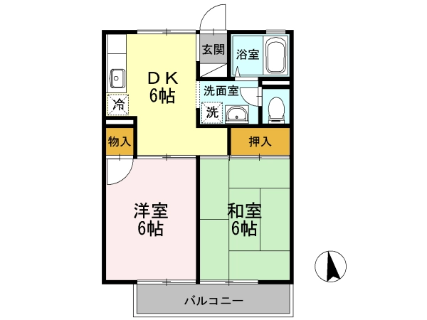 | 間取 | 2DK (DK:6帖・和:6畳・洋:6帖) |