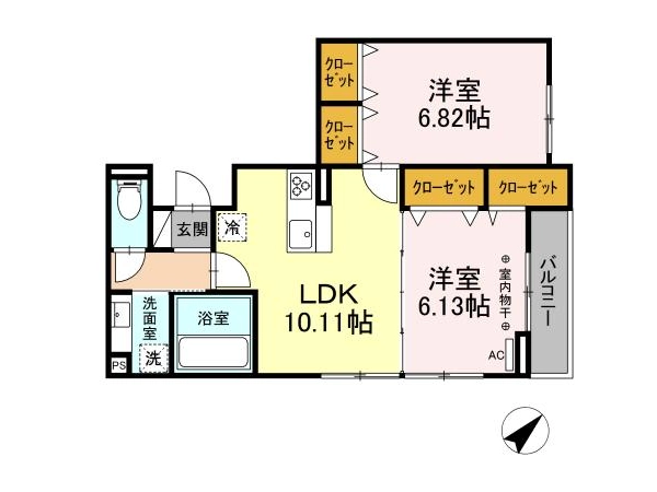 | 間取 | 2LDK (LDK:10.1帖・洋:6.1帖・洋:6.8帖) |