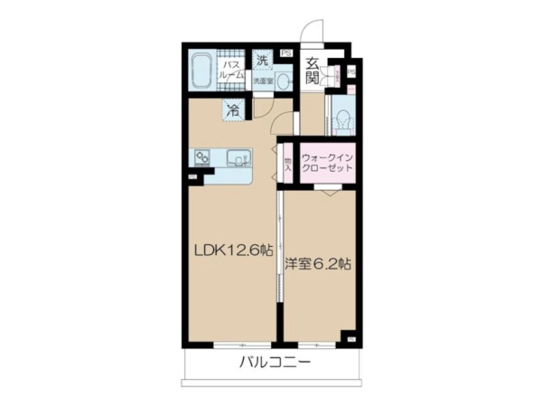 | 間取 | 1LDK (LDK:12.6帖・洋:6.2帖) |