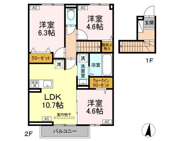 | 間取 | 3LDK (LDK:10.7帖・洋:6.3帖・洋:4.6帖・洋:4.6帖) |