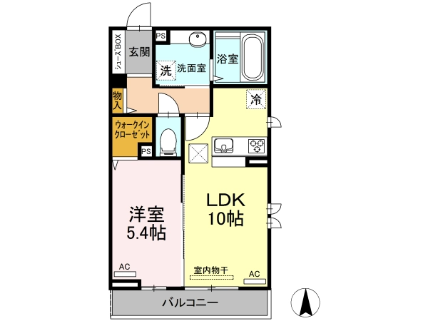 | 間取 | 1LDK (LDK:10帖・洋:5.4帖) |