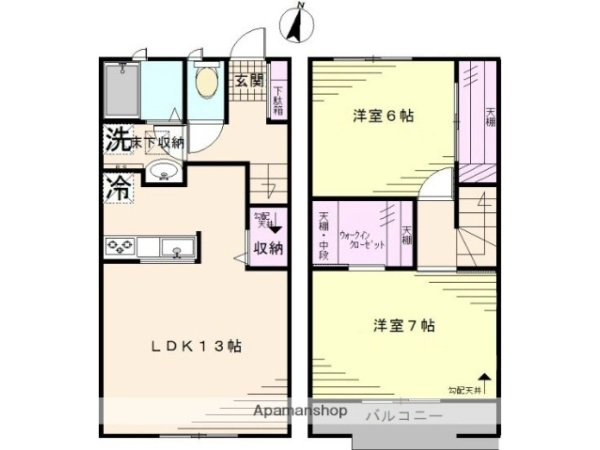 | 間取 | 2LDK (LDK:13帖・洋:7帖・洋:6帖) |