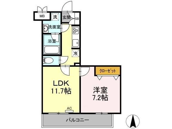 | 間取 | 1LDK (LDK:11.7帖・洋:7.2帖) |